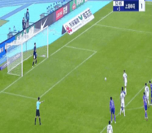 上半场补时最后阶段,蒋圣龙挑球,王献均手球,VAR介入,裁判判罚点球。吴曦操刀骗过门将,一蹴而就。