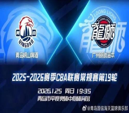 今晚19:35,2025-2026赛季CBA联赛常规赛第19轮,青岛崂山啤酒回到主场迎战广州朗肽海本。